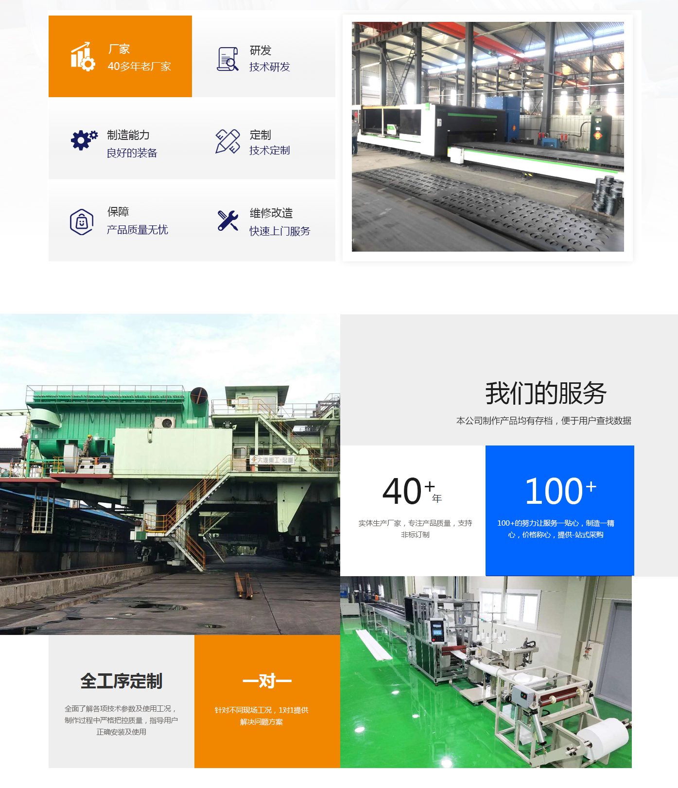 泊頭市環保機械有限責任公司始終堅持質量合格、用戶至上的宗旨。主要產品有:布袋除塵器( LCMD型布袋除塵器、高爐煤氣脈沖袋式除塵器、煤磨防爆除塵器、單機袋式除塵器、氣箱噴吹除塵器、倉頂除塵器等)、靜電除塵器( XWD系列電除塵器、CDPK型寬間距電除塵器、濕式電除塵器、電捕焦油器等)、旋風式除塵器、濕式除塵器系列、系列窯爐煙氣脫硫脫硝工程、廢氣治理設備( VOCS光氧催化、等離子光氧一體機、 活性炭吸附設備等)、濾簡式除塵器系列、各種除塵器配件產品。產品廣泛應用于冶金、電力、建材、化工等行業。
